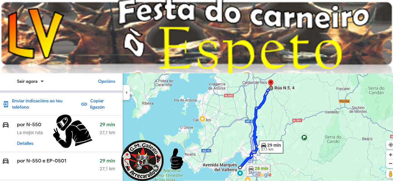 Cada quen pode decidir ir no coche ou na moto, pero como se trata de unha festa con comida e bebida, nos aconsellamos ir no coche, co piloto abstemio claro, daquela como soemos facer sempre nestes casos, no lugar da saída repartiremnos nos coches que haxa, para que vaian cheos e asi levar os menos posibles, hay que tratar de ser o mais respectuosos posibles co medio ambiente aportando o noso graninho de area, e iso e todo saúdos, vémonos na próxima…