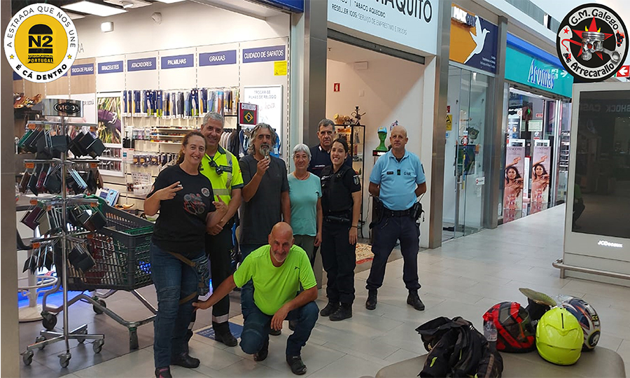 O terminar de xantar fomos o comercio de novo e xa estaba ali o lado do rapaz outro mozo, o relevo, pregunteille como fora a cousa e díxome todo ven, penso que o conseguín so queda probar a chave, non o podía crer, fun rapidamente probar a chave, e voala, a chave funcionaba caralludamente, abraceime o rapaz e díxenlle sálvacheme a vida, cóbrame e sabedes conto foi a conta por dúas chaves da moto e un montón de tempo, 25€, por suposto que lle soltei unha voa propina, quitámonos unhas fotos con el e coa Policía Portuguesa, Francesa, Italiana, e Espanhola que neses intres paseaban por ali nunha colaboación conxunta de países da UE, e o Garda andaluz chamoulle a atención o logo da camisola do Arrecarallo que levaba Sol posta, e ali estivemos votando unhas parrafadas un montón de tempo.